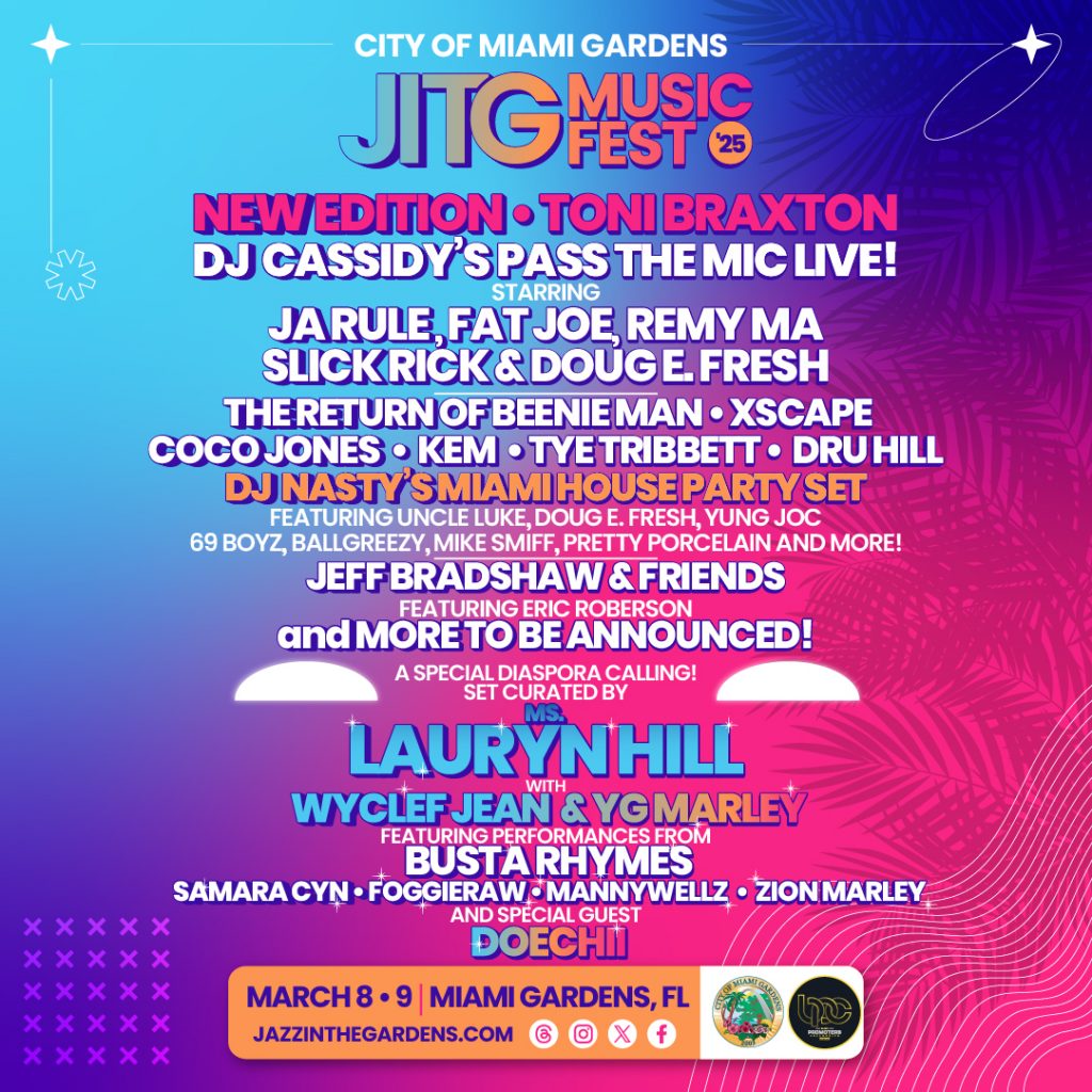 JITG is a beloved tradition in South Florida, showcasing the diverse spectrum of Black music. With a star-studded lineup, this event is not to be missed. The festival promises an unforgettable experience, blending music, culture and community.
