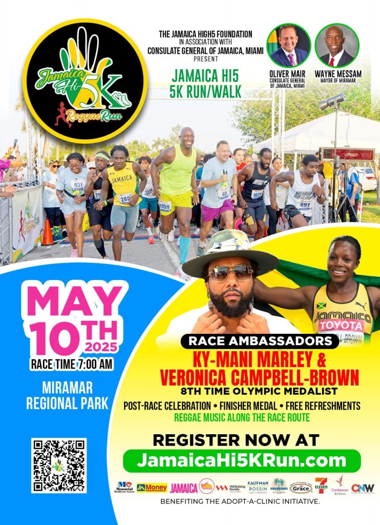 The Jamaica Hi-5 Foundation, in partnership with the Jamaican Consulate Southeastern United States, is excited to announce the 6th annual Jamaica Hi-5 5K Run/Walk, set for Saturday, May 10, 2025, at the scenic Miramar Regional Park (16801 Miramar Parkway, Miramar). Jointly hosted by Consul General Oliver Mair and Mayor Wayne Messam, this highly anticipated event is a celebration of Jamaican culture, health, and community spirit.
